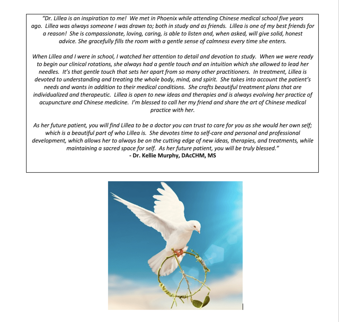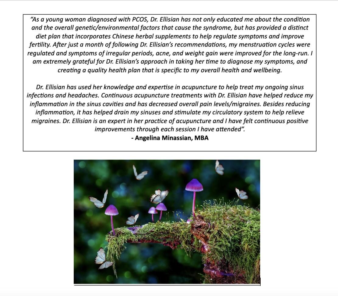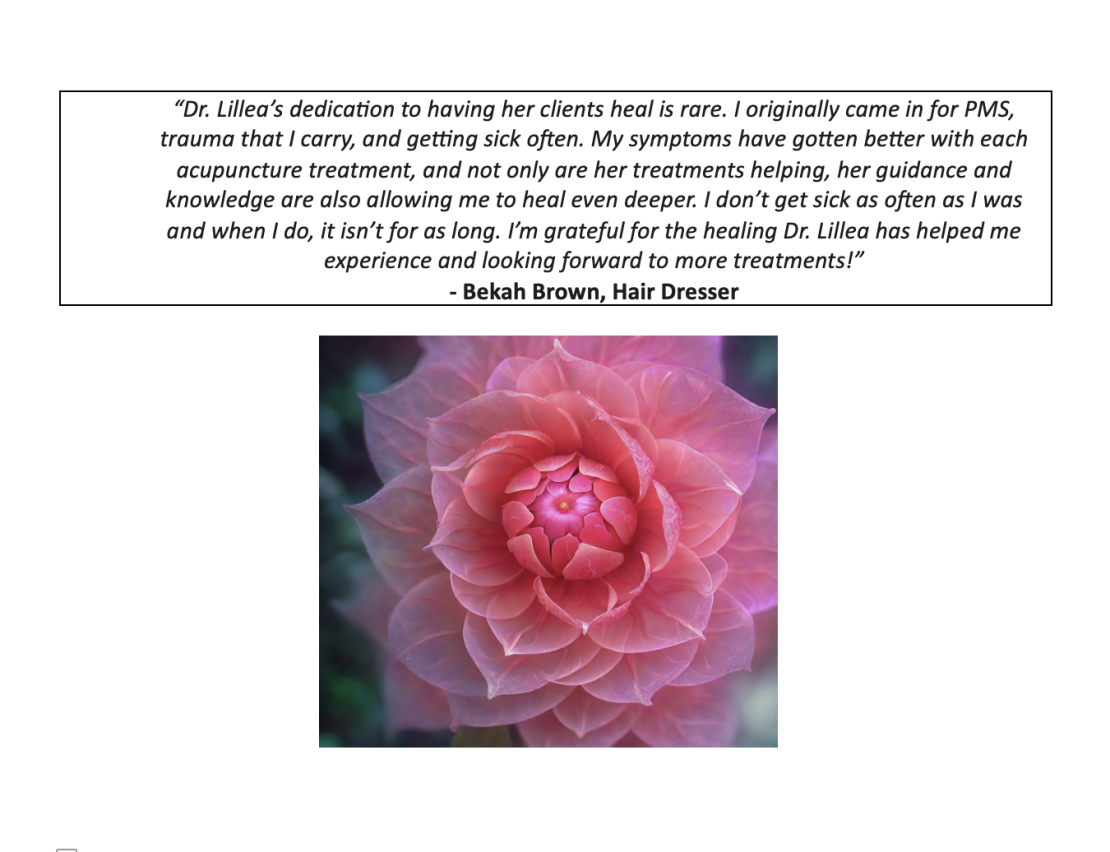 ~ A raw collection of personal patient testimonials revealing their authentic impressions and experiences with Dr. Lillea Ellisian, at Sacred Chrysalis Acupuncture Medical Clinic LLC
