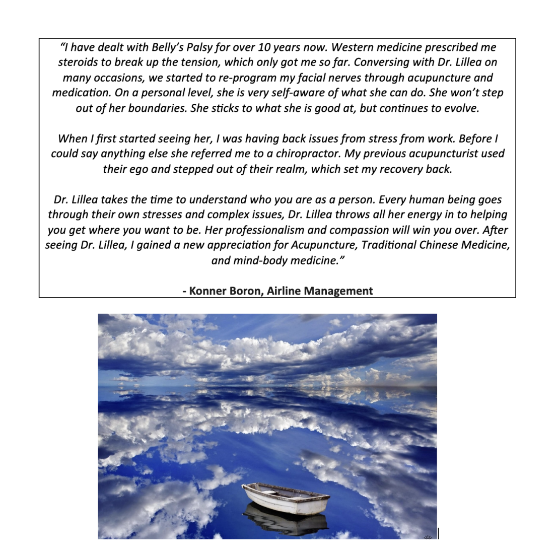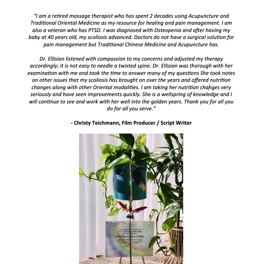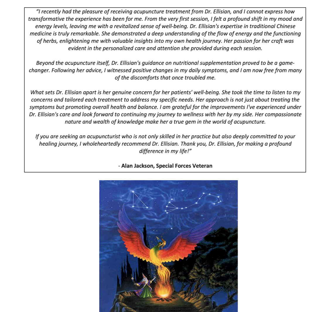 ~ A raw collection of personal patient testimonials revealing their authentic impressions and experiences with Dr. Lillea Ellisian, at Sacred Chrysalis Acupuncture Medical Clinic LLC